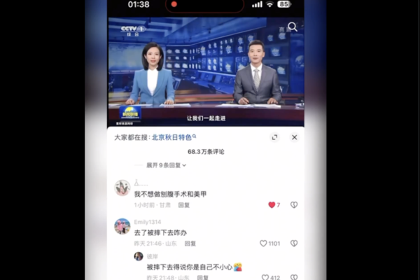 【2025年09月20日訊】(記者寧海鐘綜合報導)9月11日,大陸男演員于朦朧在北京一居民小區墜樓身亡,警方迅速定性排除刑事案件,但質疑重重。各種「內幕」消息和視頻流出,牽涉中共高層。當局不斷封殺相關信息。網民則用各種辦法要求當局給出真相,連續「衝塔(跟貼發評論)」,在央視評論留言,並打爆警方電話。