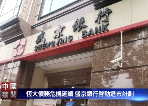 中國恆大被正式摘牌退市,盛京銀行也宣布啟動退市。(視頻截圖)