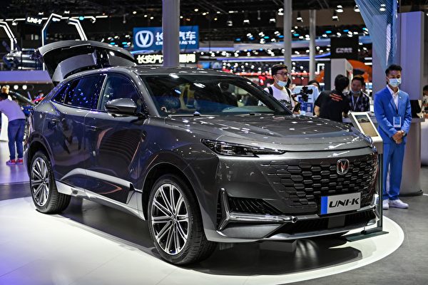 2021年4月20日,上海國際汽車工業展覽會上,一輛展示的長安汽車。(HECTOR RETAMAL/AFP via Getty Images)
