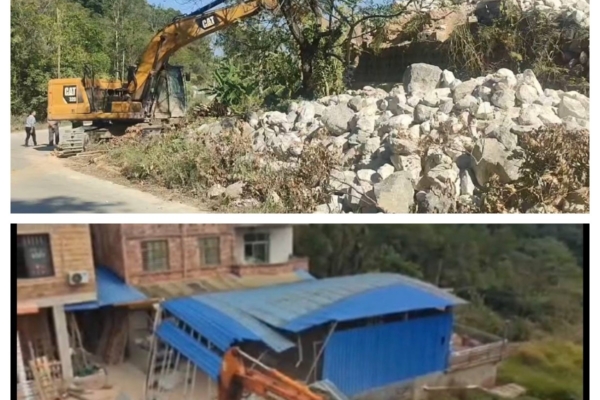 11月25日,玉林市博白縣沙河鎮長遠村闖進二三百人以及挖機,將村民的14座石灰窯強拆。