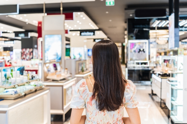 中國經濟進入寒冬,浙江、上海等地多地美容院出現關停和出讓潮。圖為化妝品櫃檯,與本文無關。(Shutterstock)