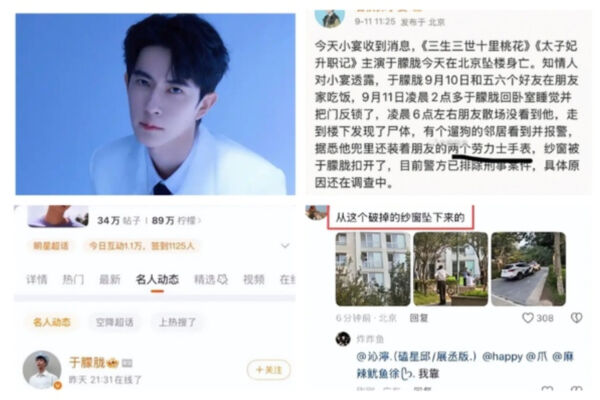 大陸男星于朦朧墜樓身亡 曾因拒潛規則遭雪藏
