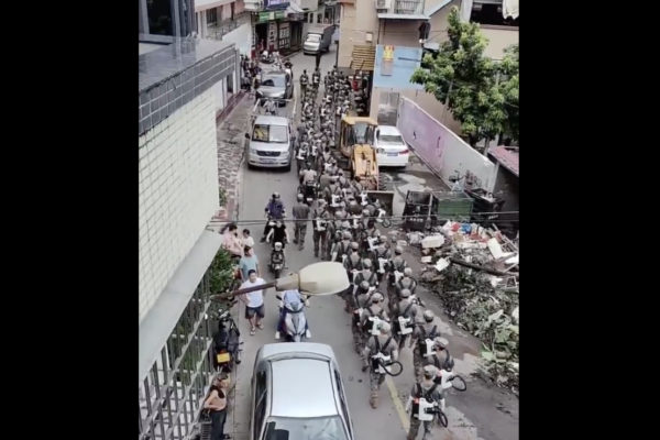 X帳號「海外爆料」說:「廣東江門再現生化危機反應部隊,清不清零不清楚,反正有點嚇人。看生化危機反應部隊裝備,似乎早有預謀,隨時準備再來一次封城禍國殃民。」