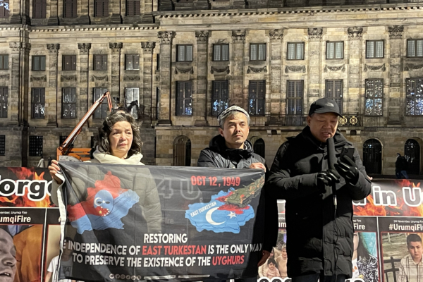 【2025年11月25日訊】(記者邱晨報導)2025年11月23日晚6時到8時,雖然是雨夾雪的惡劣天氣,約10名維吾爾族與中國各省的異議人士來到荷蘭阿姆斯特丹水壩廣場,紀念中共疫情封控期間的烏魯木齊吉祥苑大火慘劇三周年,為大火造成的50人亡魂守夜。