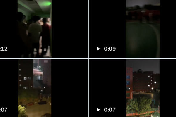 9月11日夜間,遵化市益眾中學的宿舍樓燈火未熄,走廊間不斷傳出呼喊聲。夜色中,窗戶被推開,手機手電筒的光點此起彼伏。在漆黑的學生操場上,有學生齊聲叫喊,據視頻畫面顯示,還有人推倒了欄桿。