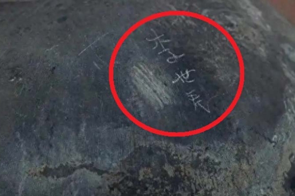 從遊客晒出的圖片可見,該刻字印記較新,呈白色,在青銅器黑色表面顯得格外醒目。