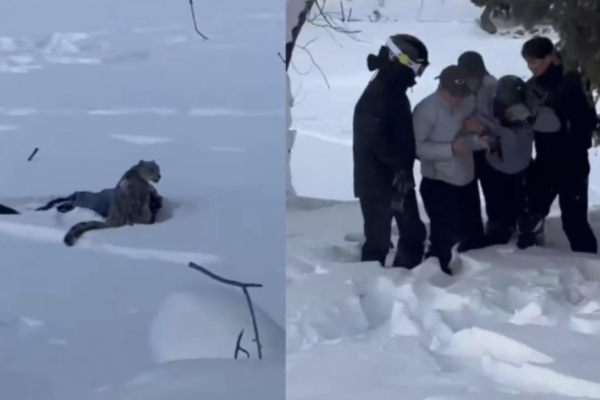 目擊者提供的視頻顯示,他們一行人從較遠處發現雪豹趴在雪地中,同行者撥打電話試圖聯繫動物保護部門報告發現雪豹,並報告了自己的位置,在去往雪場的路上。當大家以為雪豹動作不會太快時,它已撲向目標。