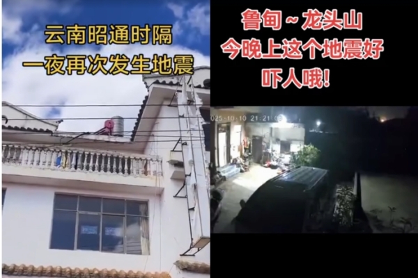 【2025年10月11日訊】雲南昭通市魯甸縣繼10月10日晚9時21分發生4.4級地震之後,今日(10月11日)上午11時18分,該縣又發生4.8級地震。據魯甸網友表示,地震造成當地老房子倒塌,「重傷一個,死了一個」。