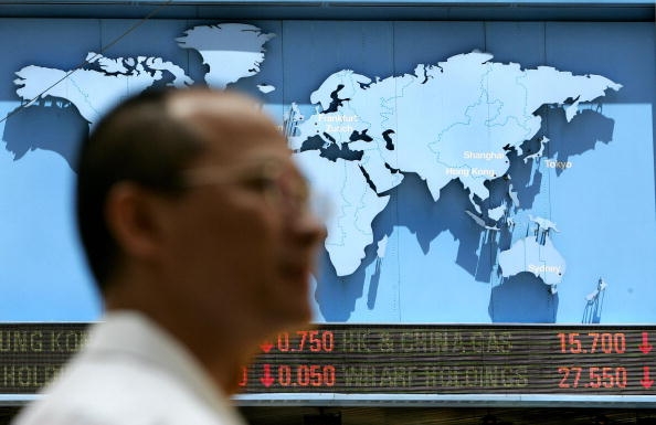示意圖。圖為一男子經過證券公司的股票顯示器。(AFP/Getty Images)