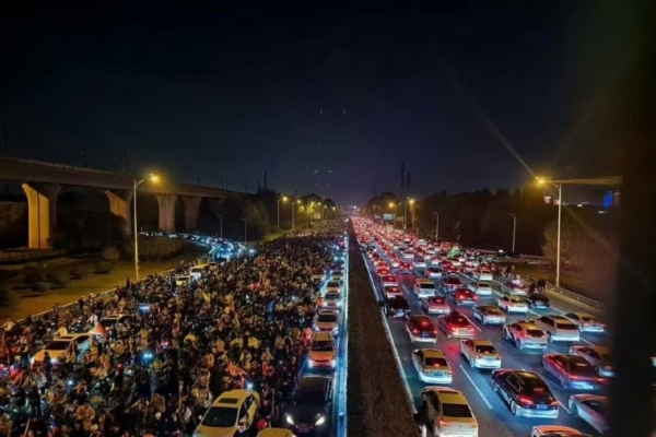 而在鄭開公路上,則經常出現幾萬、十幾萬人的「夜騎大軍」。