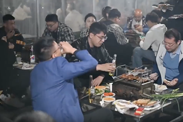 2023年3月31日,在中國山東省淄博市,一家烤肉店擠滿了食客,顧客排起長隊等待空桌。(VCG/VCG via Getty Images△)