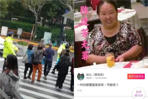 上海維權人士陳建芳案2021年3月19日開庭,近70名公民旁聽被抓。上海訪民網上為其聲援。(受訪者提供/大紀元合成)