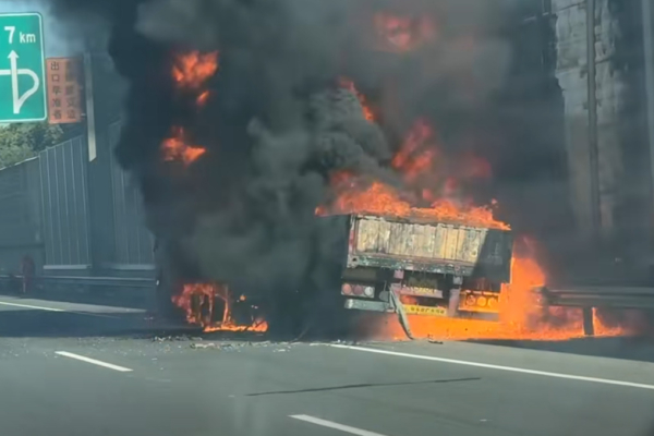 上海高速上一貨車起火 車輛及貨物全部燒毀