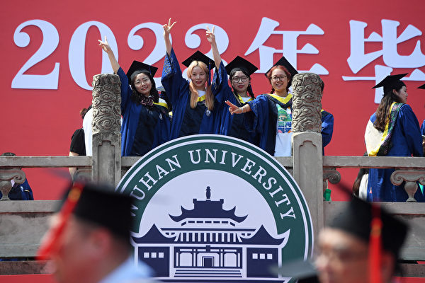 2023年6月20日中國湖北省武漢市,武漢大學畢業生在畢業典禮上擺姿勢拍照。(STR/AFP)