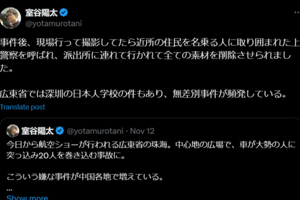 到現場採訪的日本TBS電視台記者也只能在血站門外進行報導。TBS駐中國記者室谷陽太12日晚在X平台發文還稱,事發後,他前往現場採訪,被一群自稱是附近居民的人包圍並報警,之後他被帶到警察局,並被逼迫刪除所有採訪素材。