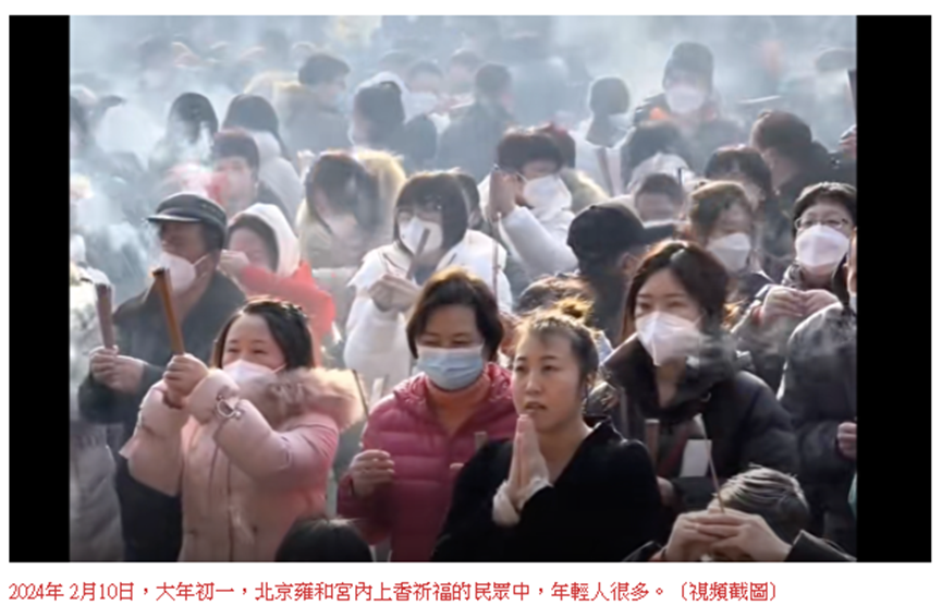 与此同时,一种古老的文化传统正在年轻人之间流行,包括命理学、风水学、占卜学等等,大陆大批的年轻人也开始热衷去寺庙拜佛上香。