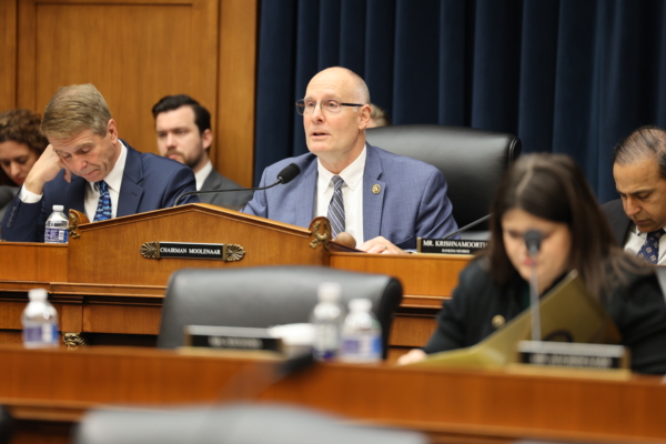 2024年12月5日,美國眾議院中共問題特別委員會主席約翰·穆勒納爾(John Moolenaar)在「重建民主世界軍火庫」聽證會上發言。(中共問題特別委員會提供)