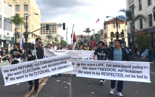 遊行隊伍前的橫幅寫著「我們要生活,不要清零政策」(We want life not zero-covid policy)「我們要自由,不要封鎖」(We want freedom, not lockdowns)「我們要被尊重,不要被欺騙」(We want to be respected, not to be lied to)「我們要改革,不要文革」(We want reform, not the Cultural Revolution)「我們要選舉,不要獨裁」(We want election, not dictatorship)「我們要做公民,不要做奴隸」(We want to be citizens, not slaves),眾人舉著白紙緩緩前行,為因白紙運動獲罪的人們發聲。