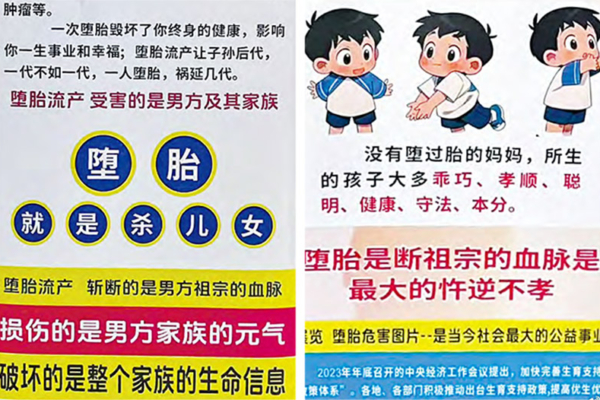 「墮胎流產,斬斷的是男方祖宗的血脈,損傷的是男方家族的元氣」、「墮胎就是殺兒殺女」……,這是廣東河源友好醫院近日在院內推出多個反墮胎主題宣傳展板內容。