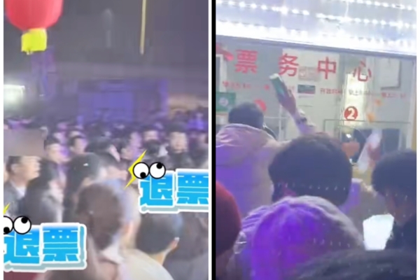 【2025年01月02日訊】廣東省東莞景區「荷塘印象」在跨年門票中宣傳將舉辦煙火秀。但是大批遊客2024年12月31日晚到了景區發現煙火秀被臨時取消,於是聚集在景區售票處要求「退票」,但被拒絕,部分遊客開始向售票處投擲雜物,甚至掀翻了售票處的圍欄和冰櫃。