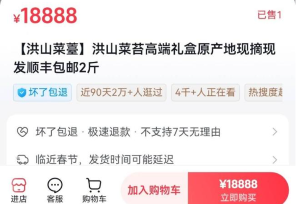 【2025年01月28日訊】武漢某蔬菜基地銷售的一款兩根「洪山菜薹」禮盒標價18,888元(人民幣,下同),有網民調侃稱「吃了能成仙。」