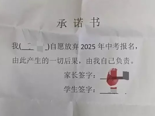 【2025年01月13日訊】近日,河北保定涿州市義和莊中學被指要求部分成績差的學生自願放棄初中學業水平考試。一位家長發視頻舉報稱,其孩子被學校要求籤承諾書放棄中考,走單獨招生途徑升學。
