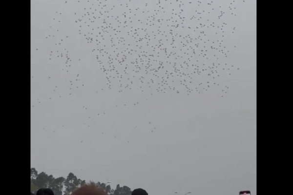 網傳視頻顯示,密密麻麻的無人機在半空中排列好隊形之後開始表演,突然一架架的無人機像下餃子一樣紛紛開始墜落,部分掉到陸地,大部分墮入海中。