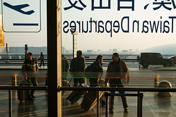 從12月28日起,北京、天津、河北三省市將聯動實施部分國家外國人144小時過境免簽政策,圖為北京機場的乘客。( Fred Dufour/AFP/Getty Images)