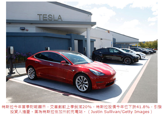 但特斯拉今年首季财报显示,交车数较上季锐减20%、仅38.68万辆,特斯拉股价今年也下跌41.8%,引发投资人担忧。