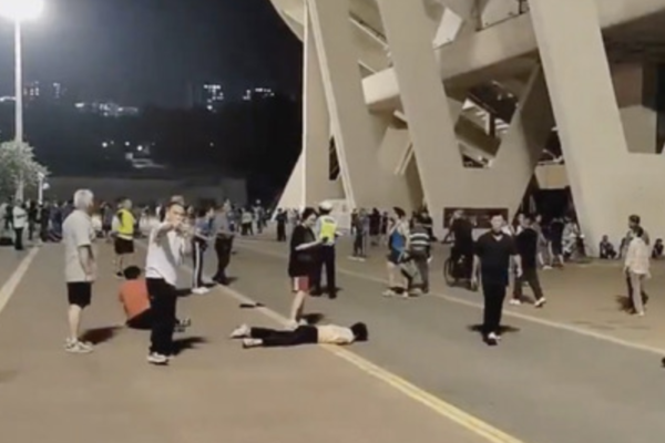 事發當晚,體育場上有六隊徒步隊伍,每隊有四五十人,他們每天都在這裡走路健身,廣場上還有其他跑步健身的人。