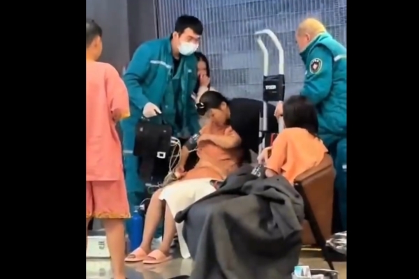 網傳視頻顯示,洗浴中心內,2名身著洗浴服的女性顧客坐在椅子上休息,3名醫護人員正在救治其中一人。這時又有多人互相攙扶從鏡頭前走過。鏡頭一轉,一名坐在椅子上休息的女性腳下有一堆嘔吐物。