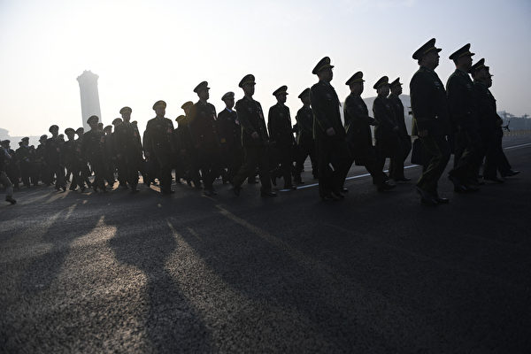 圖為中共軍隊代表出席中共兩會。(Greg Baker/AFP)