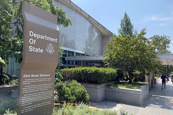 圖為華盛頓特區美國國務院的牌子。(Daniel Slim/AFP via Getty Images)