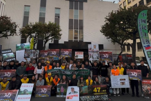2024年12月15日,在中國民主黨聯合總部倡議下,包括中國社會民主黨、中國婦權、南加州港人避風塘、中國人權關注組、洛杉磯白紙運動同盟會等在內的民間組織在洛杉磯中共領館前集會,聲援國內訪民。(新唐人電視台)