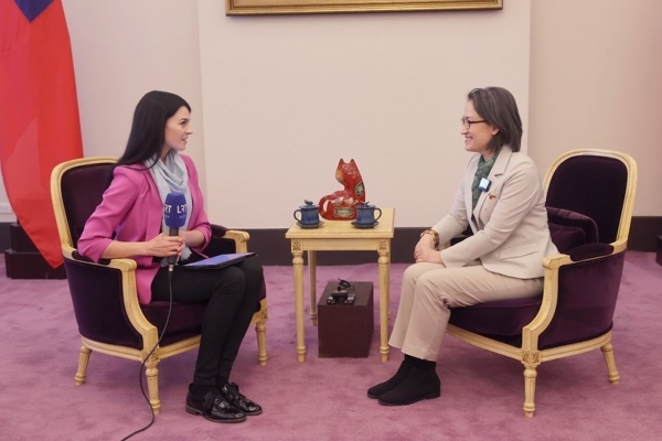 2024年12月16日,中華民國總統府指出,副總統蕭美琴(右)日前接受「立陶宛國家廣播電視台」專訪。(總統府提供)