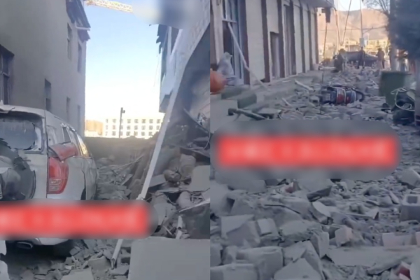 網上視頻顯示,當地街上到處是倒塌的房屋和牆壁,整條街全是碎石,一片狼藉,還有車輛被砸壞;還能看見大批民眾在外面避難,不敢返回屋內。