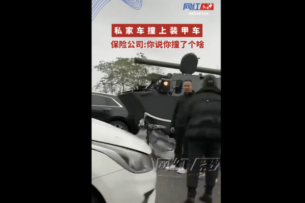 【2024年11月25日訊】11月24日,重慶一私家車撞上軍用裝甲車,現場畫面曝光。此事引起網民調侃——保險公司「天塌了」。