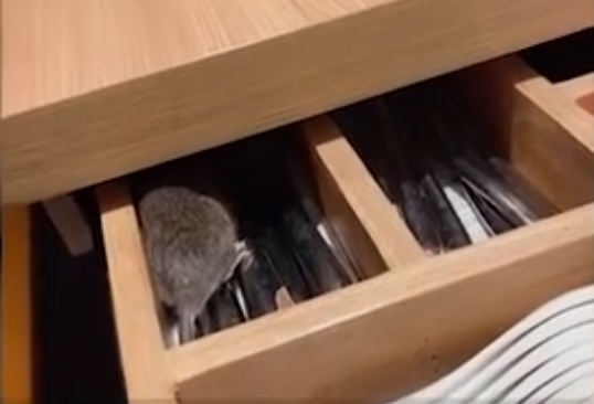 據點時新聞12月26日消息,一名用餐者表示,12月25日在一家粵式茶餐廳用餐,當拉開放置餐具的抽屜時,發現一隻大老鼠趴在餐具上。
