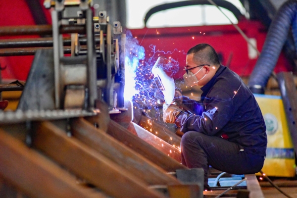 2024年11月15日,山東省一家工廠,一名工人正在生產線上工作。(Stringer/AFP via Getty Images)