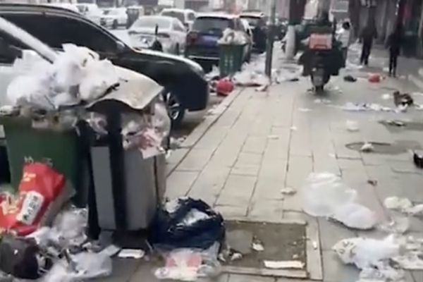 視頻中,街頭隨處可見堆積的垃圾無人清理,一些塑料袋、紙屑隨風飛舞,一男子在視頻中吐槽道:「不給工人開工資,環衛工人都乾急眼了。」