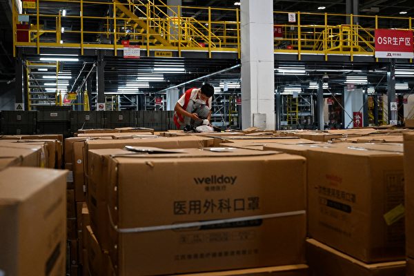 示意圖。圖為2022年9月8日,一名工人在北京的一家京東(JD.com)倉庫分揀包裹,準備發貨。(JADE GAO/AFP via Getty Images)