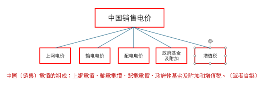 第一、中国电价的组成。李成仁指出,中国的销售电价(用户)由三块组成:上网电价(发电企业)、输配电价(电网)和政府性基金及附加(电网代收)。笔者以为,中国的销售电价(用户)由五块组成:上网电价(发电企业)、输电电价(电网)、配电电价(供电局)、政府政策性的基金及附加和政府征收的增值税: