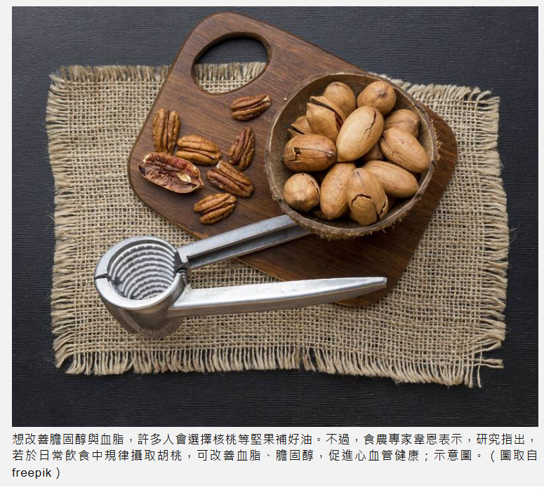 想改善胆固醇与血脂,许多人会选择核桃等坚果补好油。不过,食农专家韦恩表示,1项刊登于《Nutrients》的研究指出,若于日常饮食中规律摄取胡桃,可能有助于改善血脂、胆固醇及血管功能,进而促进心血管健康。但也提醒若以胡桃替代其他脂肪来源需留意摄取份量,以免额外增加总热量。