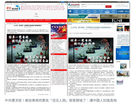 今(4)日为中国六四天安门事件36周年,每到这段期间,中国政府往往都会祭出一些手段来限制网络言论,各种提到相关敏感字词的事物都会遭到禁止。不过,眼看中国不断封锁消息,就有黑客组织对多个中国网站进行攻击,将最广为流传、被称为「坦克人」的人肉挡坦克照,变成解放军网站首页照片,高喊「让中国人民知道中共屠杀暴政的真相」。