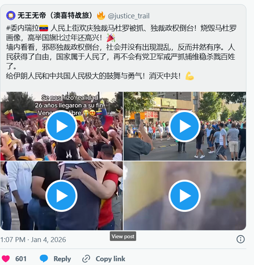 这场事件本身已是国际政治的一大戏剧性转折。然而,它的影响不止于拉美,而是像多米诺骨牌一样,在世界各地形成连锁反应,在中国社群中激起极为罕见的情绪与看法。