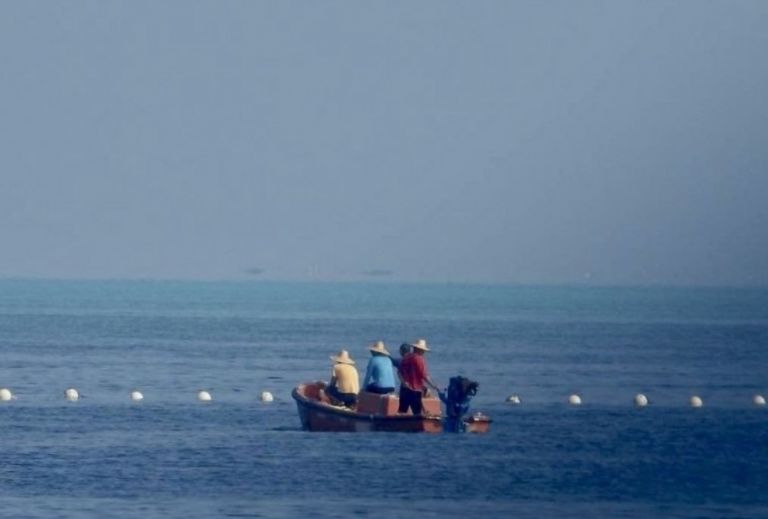 中国海警九月下旬,在南海黄岩岛附近,放置了一条长近 1,000 英尺的浮球屏障,菲律宾大声反对,总统小马可仕决定拆除这条屏障,不过,中国海警船人高马大,于是菲律宾海岸警卫队,脱下制服扮成渔民,坐上一艘木制渔船,竟穿越了一旁监督的四艘中国海警船,割断这条屏障。
