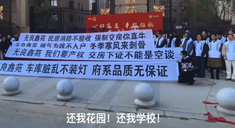 Share Facebook Twitter Email 「河南郑州:业主围堵警车要求释放被捕维权者(12月7日)」河南郑州,鑫苑府的业主们围住一辆警车,要求警察释放抓捕的维权业主。 周六是鑫苑府的交房日,为抗议开发商降标减配,业主们在鑫苑府大门前拉横幅并高喊“还我花园、还我学校”等口号,有业主因此遭到警察抓捕。 此前,由于鑫苑府存在未兑现学区、暖气未入户、没有产权证、消防未验收等大量问题,业主曾多次维权,但开发商拒绝整改,而且拒绝了业主先验收再收房的要求。 Post Views: 10,422