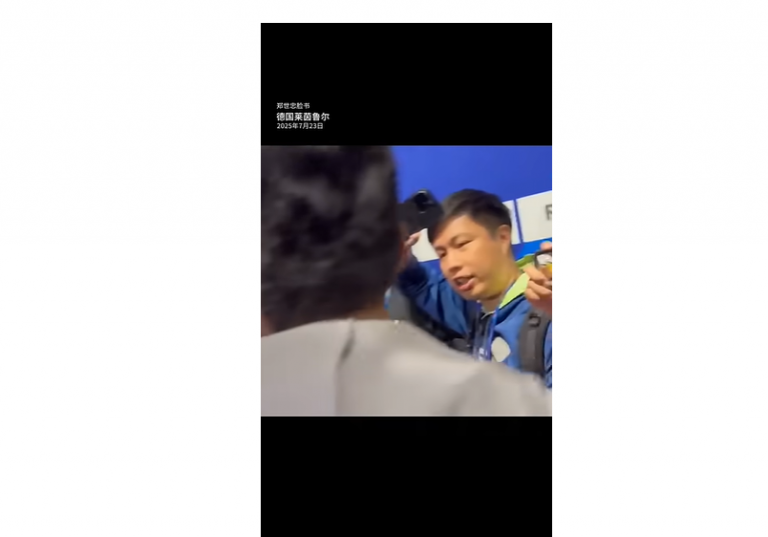 2025世界大学生运动会在德国莱茵鲁尔举行,台湾桌球男团击败中国队赢得金牌后,中方开始不断挑衅台湾代表团。台湾体育署长郑世忠表示,中方抗议赛事时有人喊台湾加油,又在羽球团体赛事结束后试图抢台湾的贺电,没想到在台湾跆拳道男子团体获得银牌后,中国队又再度前来抢夺台湾教育部发去的贺电,称“违反规定”,要代表队“阖起来”,贺电不能打开拍照。不过中方的“长臂管辖”动作,被周边的人拦阻下来。