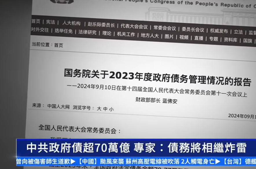 中共政府债超70万亿 专家:债务将相继炸雷