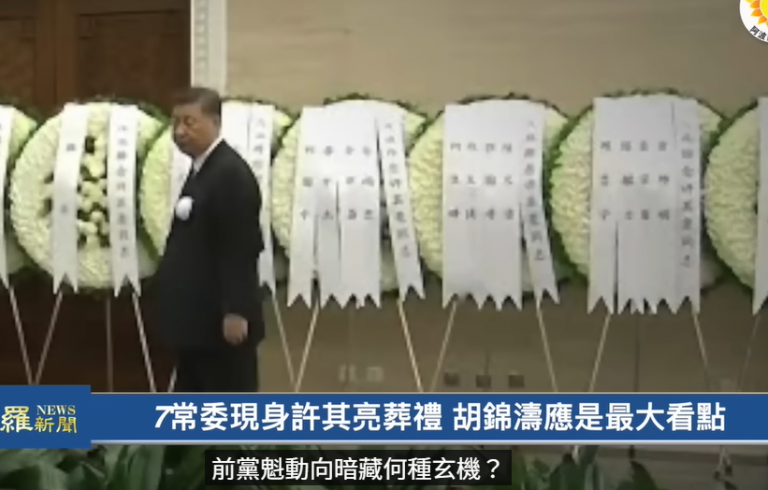 Share Facebook Twitter Email 00:00 摘要 00:56 许其亮葬礼一大看点:何卫东没送花圈 真见马克思了? 02:36 7常委现身许其亮葬礼 胡锦涛应是最大看点 05:17 许其亮葬礼降级 习近平疑被控场 军队高层集体隐身 Post Views: 20,020